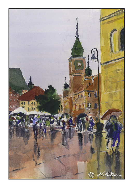 Anyway, this drawing is a culmination of drawing people and buildings, learning a bit about perspective and thoughts about how to do things. I enjoyed this one a lot even in my moments of frustration. Rather than using Bristol paper, I used 140# CP watercolor paper. The first frustration was the texture of the paper and my pencil – a lot of smudges. Still, I continued and laid down the ink lines after I had it limned out. Then, erasing all that smudging with the kneaded rubber eraser, and it cleaned up very well.