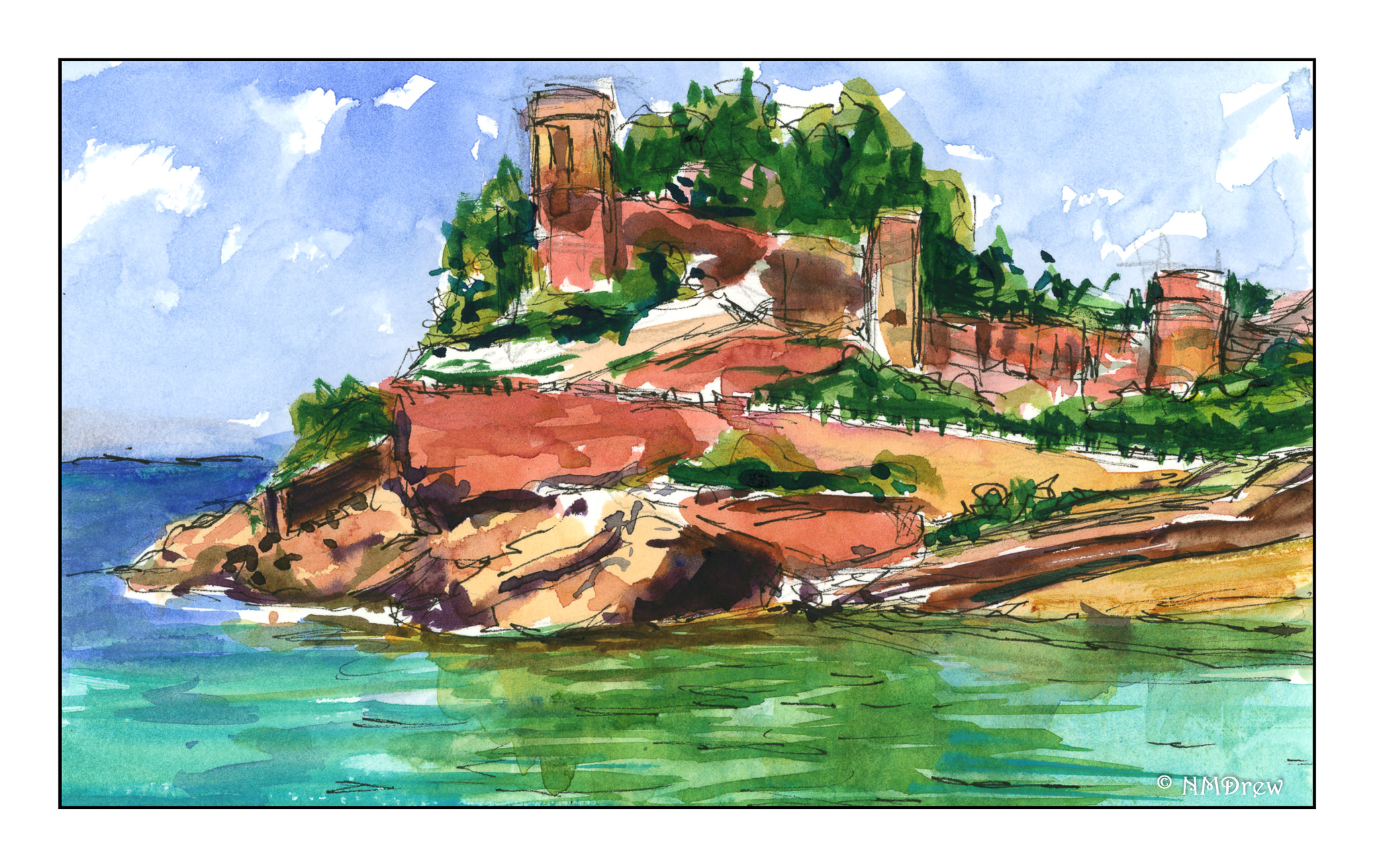 I also was a lot calmer when I did this painting, and I was in the studio, not in 85F weather with a steady breeze to dry out my paints and raise my temper! Lesson learned there.