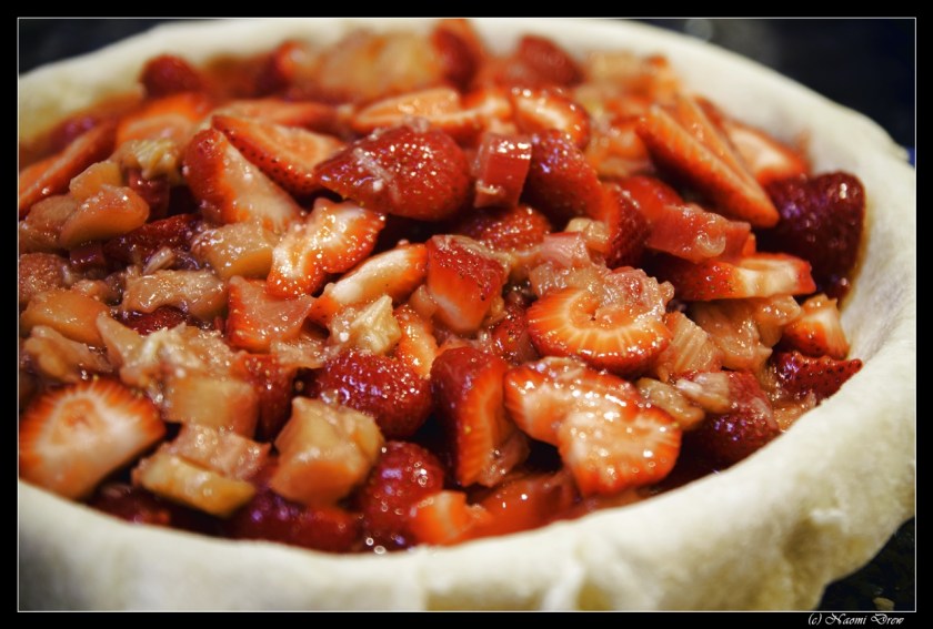 There is nothing in the world of sweets that pleases me more than a fresh pie. It’s work, and it is seasonal, but pie made with fresh fruit is always my idea of heaven. So, for the long weekend, the pie is – as many others are making – Strawberry Rhubarb Pie. This pie needs to be carefully balanced between sweet and sour, so if you are making it from scratch with a whatever-goes mentality, best to taste it before you bake it. (Isn’t that another reason to bake – to eat raw dough and taste-test the ingredients?)