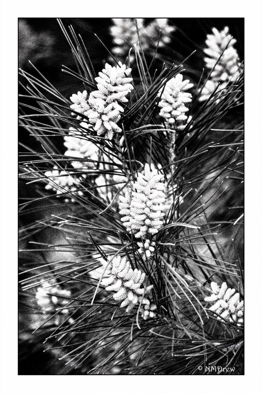 Yesterday it was over 80F. Today it is a cool 69F. Little rain. Still, life continues. New growth on a pine at the local garden, where flowers are in bloom everywhere. A walk in the open space nearby found mockingbirds singing away, looking for wives, and staking out their territory. It’s a stunning time of year.