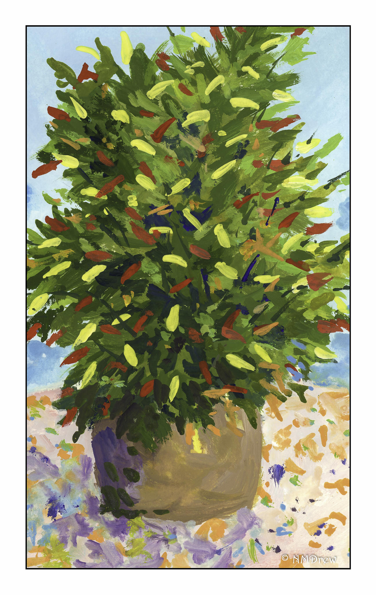 For some reason I think this plant is called grindelia, which is a rather thorny plant with yellow flowers. It is also a bit sticky when green and in bloom. In the winter the leaves dry and it becomes a bit more thorny. In many ways it is well-suited for a dryish clime. The resinous qualities of the leaves help preserve moisture, thorny qualities deter making it a lunch. It has a pleasant scent and you can smell it when you walk by or through it. The fields where I walk host its growth along with various grasses and flowers, all of which become a drab shade of brown as the dry season progresses.