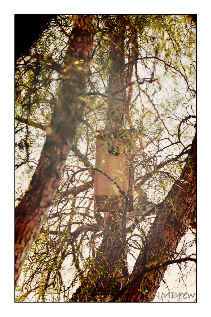 I think this may be an owl house – not sure. We have screech owls in our area and they can be pretty scary when they screech!