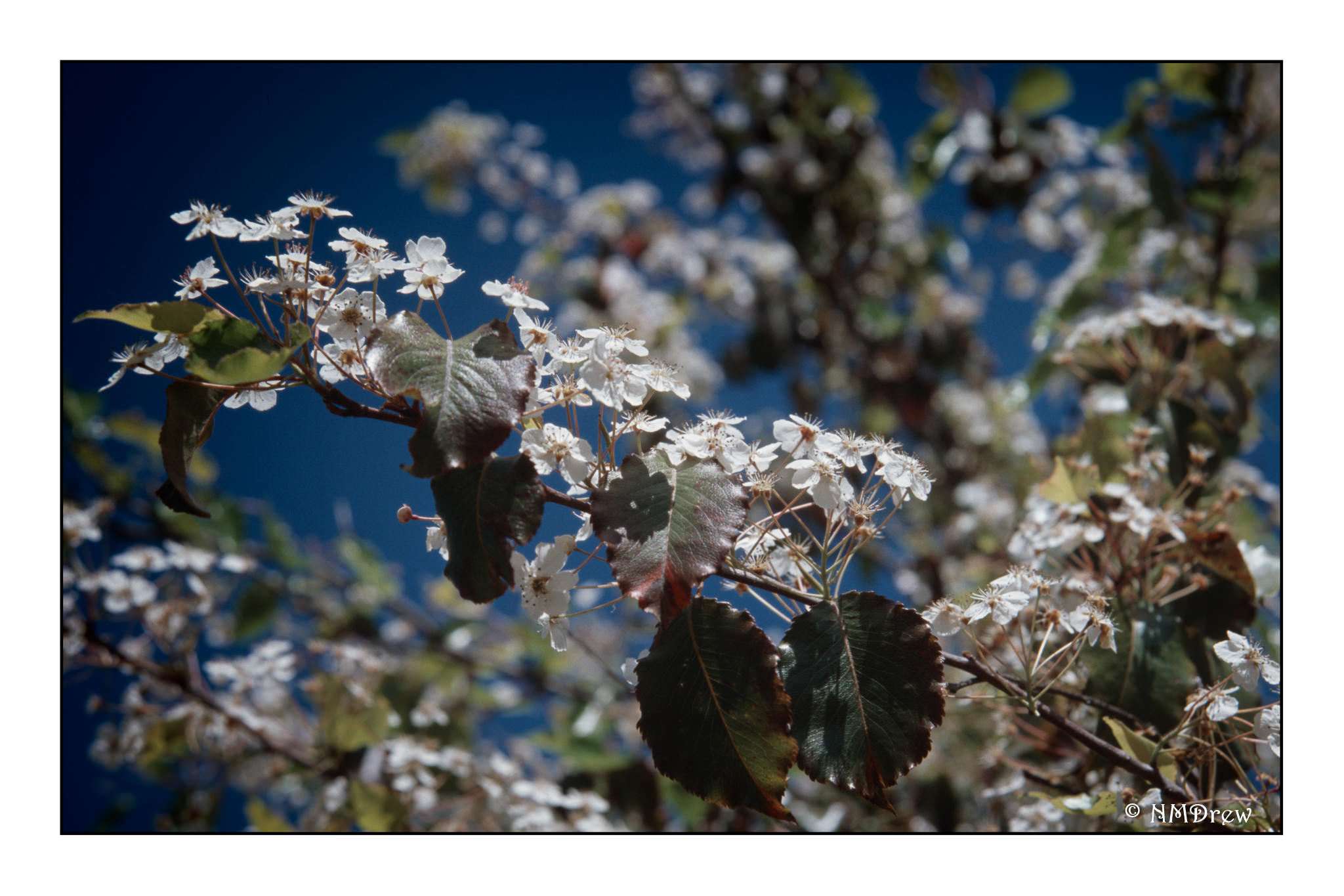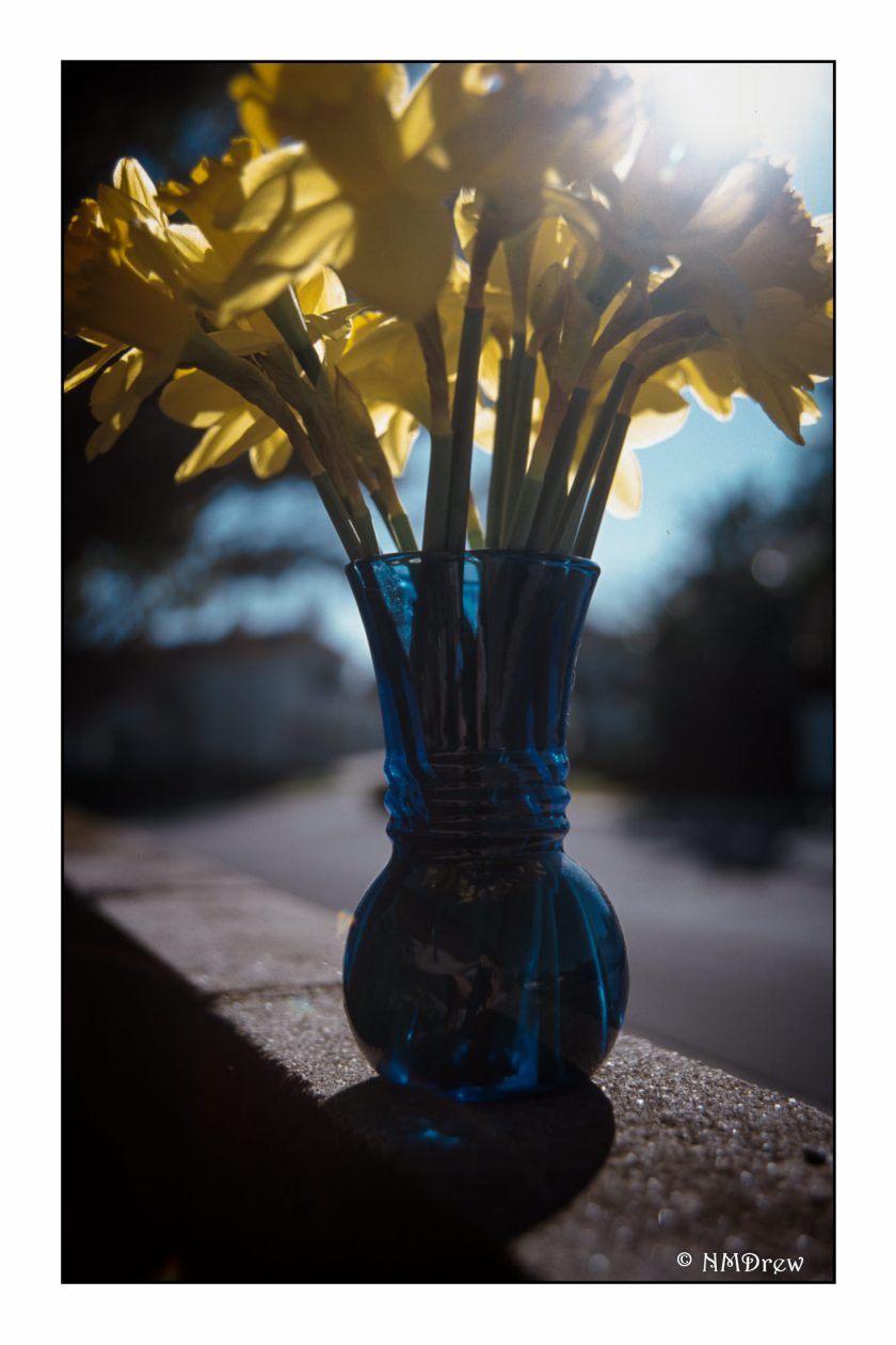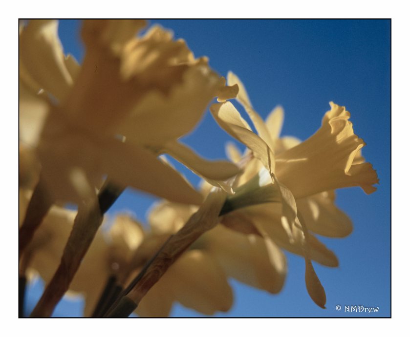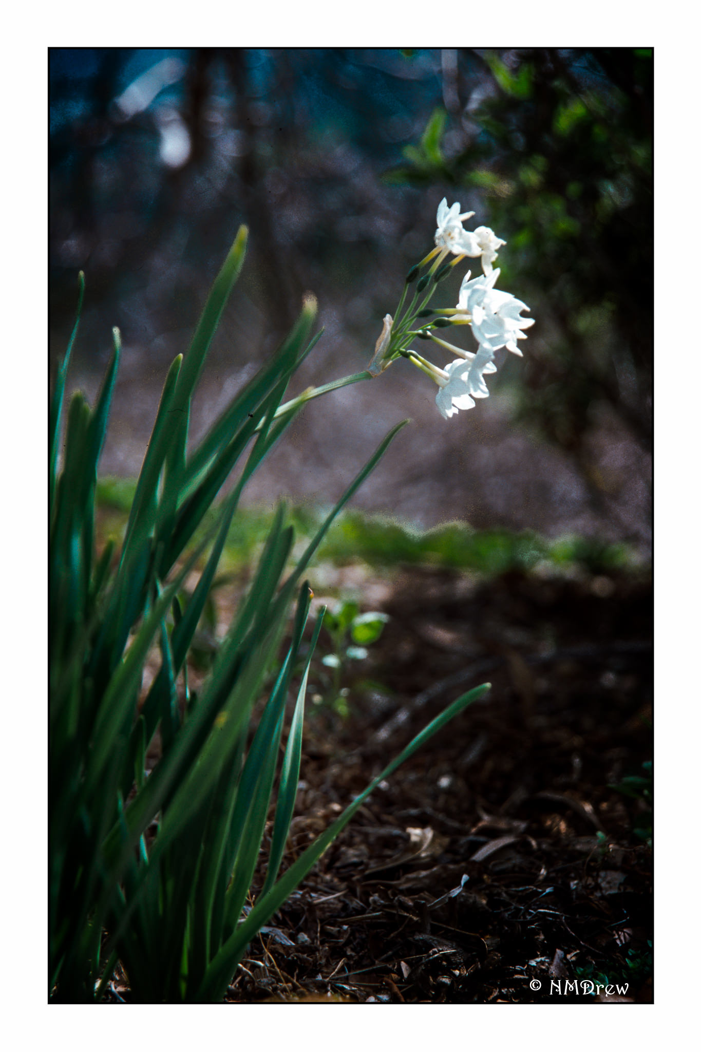 I took my Nikon N90s, Nikon 28-85 f2.8 Macro, and a roll of the new Kodak Ektachrome E100 to the botanical garden – always a favorite place! Springtime is the best, too, as trees and bulbs and plants are all in bloom. This was taken as the last of the narcissus bloomed and were fading away. At the gardens, the narcissus are the first up and first to fade.