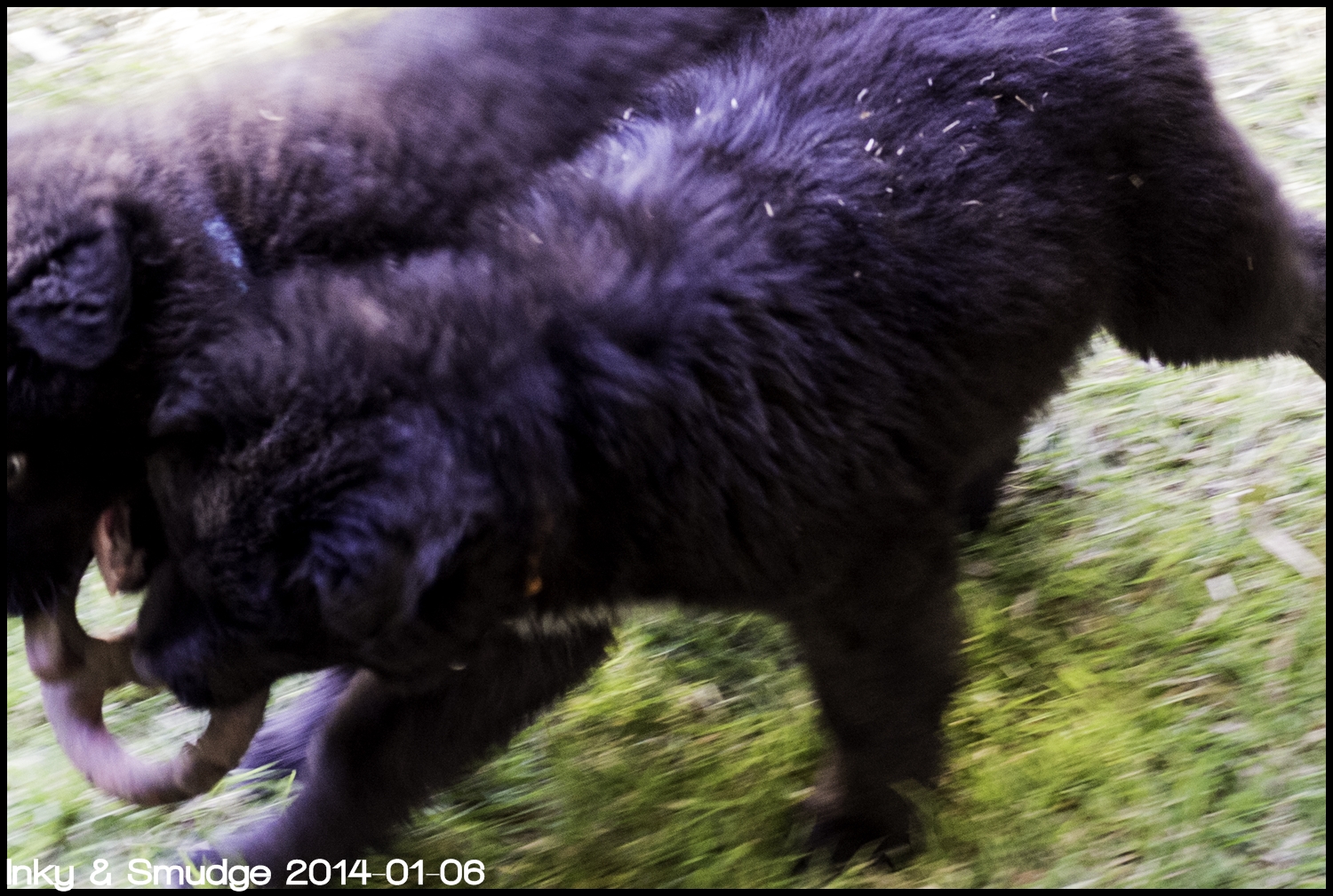 Let me introduce you to two new family members: Inky and Smudge, labrador-Aussie mix. Mellow, fuzzy, cute. 10 weeks old. From St. Martin’s Animal Rescue. Cutest little things (we think!). Smudge is bigger (at 13 lbs.) and a dark grey, and Inky is smaller (at 11 lbs.) and blacker.