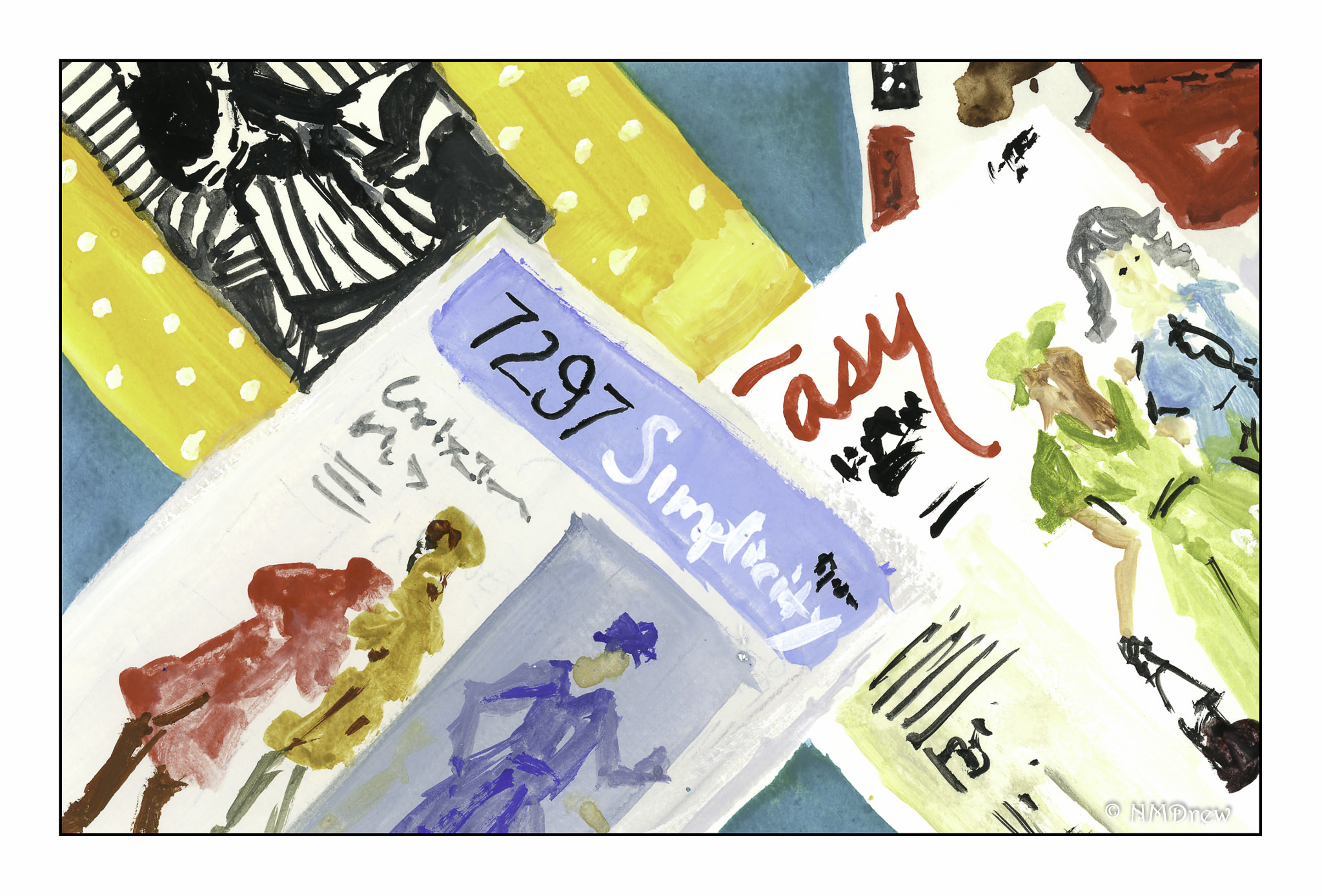 I was pondering this one – I thought of all sorts of patterny things, but in reality, nothing grabbed me. As my studio – particularly the sewing area – is in total disarray, sewing patterns suddenly seemed perfectly obvious.