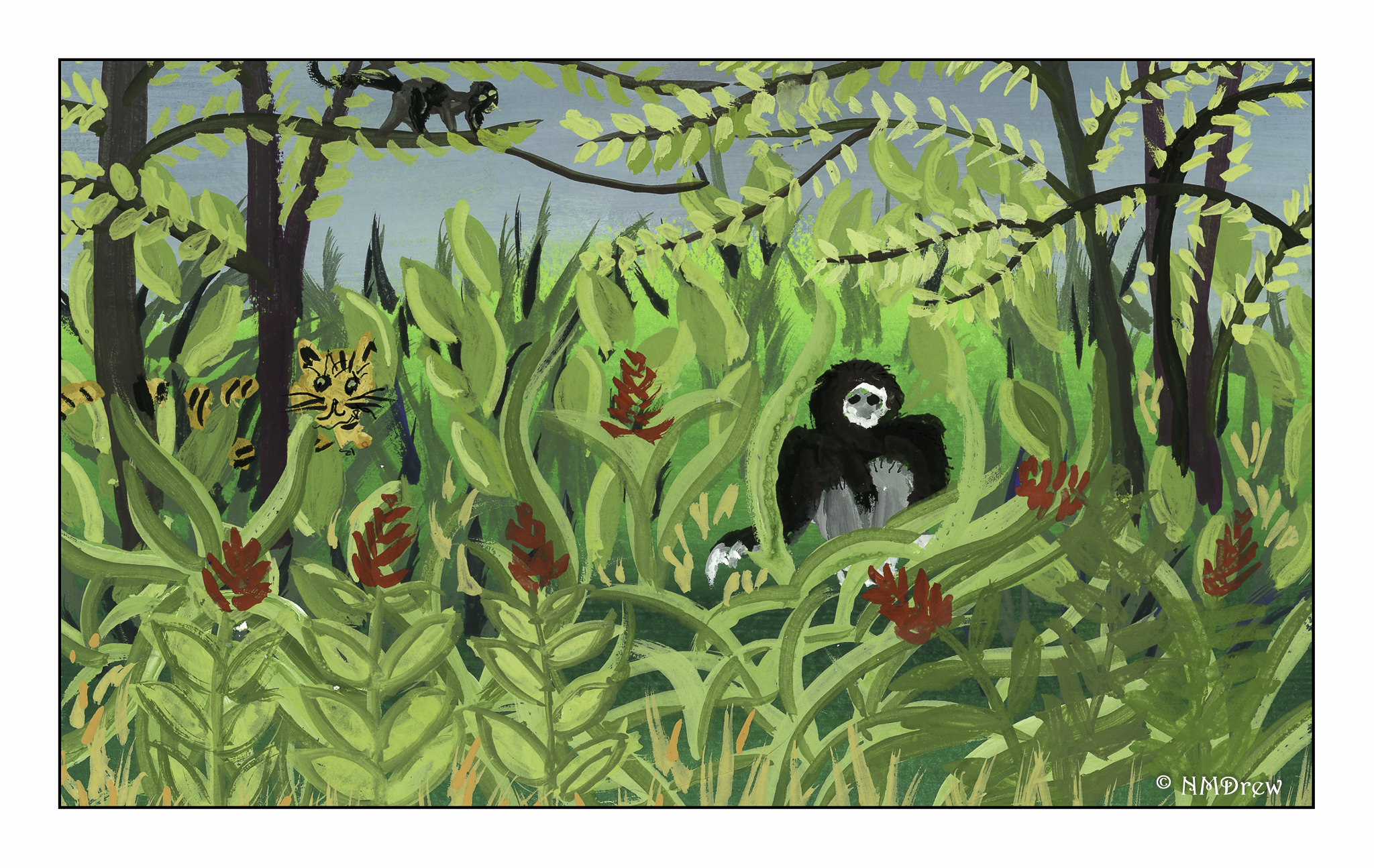 This gouache is a tribute to the wonderful work of Rousseau, and while certainly not on the same caliber as his work, I hope it does convey the richness of his imagination with a bit of my own.