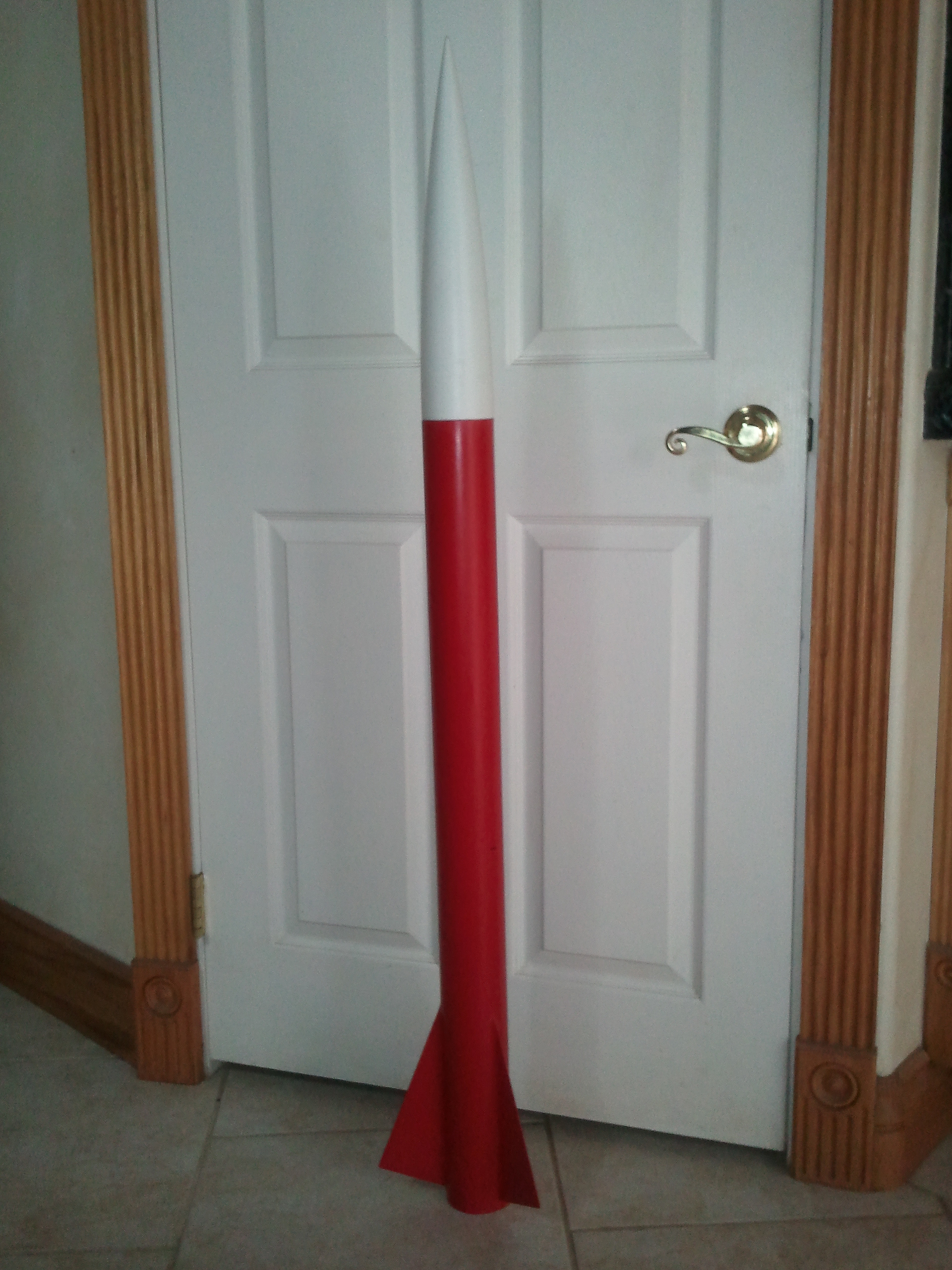 My uncle has been getting into and enjoying high-power rocketry for a while now, and I guess I’ve been a little inspired by his enjoyment. In hanging out with him, I got interested in it, too, and raided his scrap bin for some parts and ideas. While most people interested in rocketry would probably begin with any of the high-quality kits that are available, things seemed to line up for a scratch build for me.