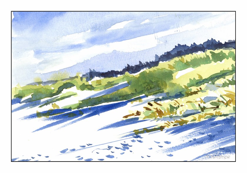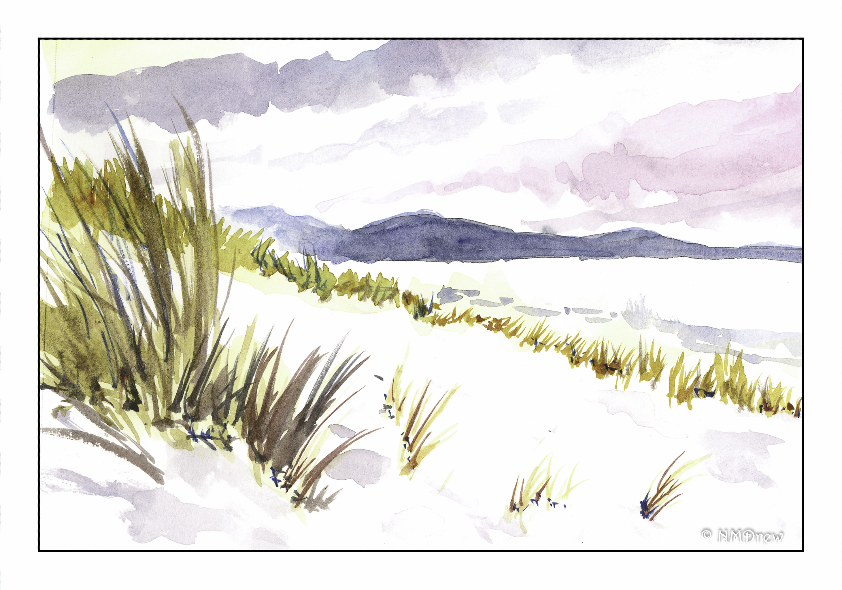 Nearly everyone I know loves the beach, but there are exceptions. Mostly, they don’t like sand! To me, sand is one of the best parts of the beach. Barefoot, sinking into sand as the tide goes out, walking on warm sand. Watching the sand skitter across the beach with the wind, in lines or swirls. Hearing the waves come in and out, a whisper to a roar. Walking in sand can also be hard work! And then, the plants. Grasses, strange sea radishes (that are rather tasty), sea weed and other flotsam. All these make a beach.