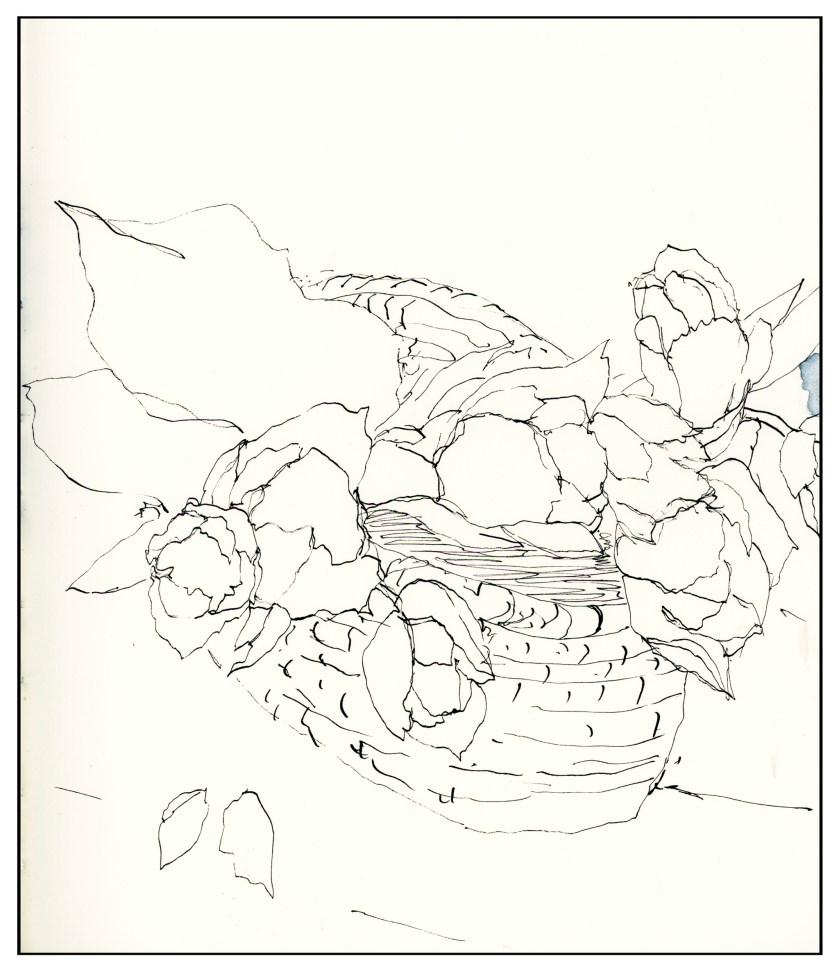 And finally, I can get back to drawing and painting. This morning, more tulips, done with iron gall ink, prior to applying some paint. Here ya go!