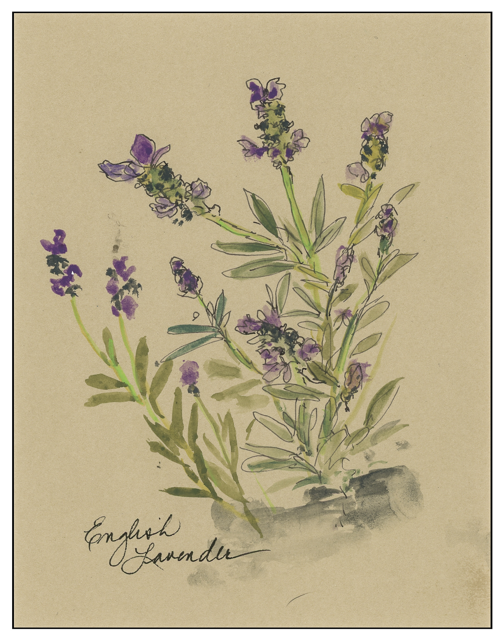 So, today’s sketch is really last night’s sketch.  I went out with my tablet of tan paper and took a look.  Almost all green except for the lavender plant.  I used ink for the initial drawing and then Derwent’s InkTense colors.  Then, for the ones on the left, I just painted to see which looked better – pen and color, or just plain color.