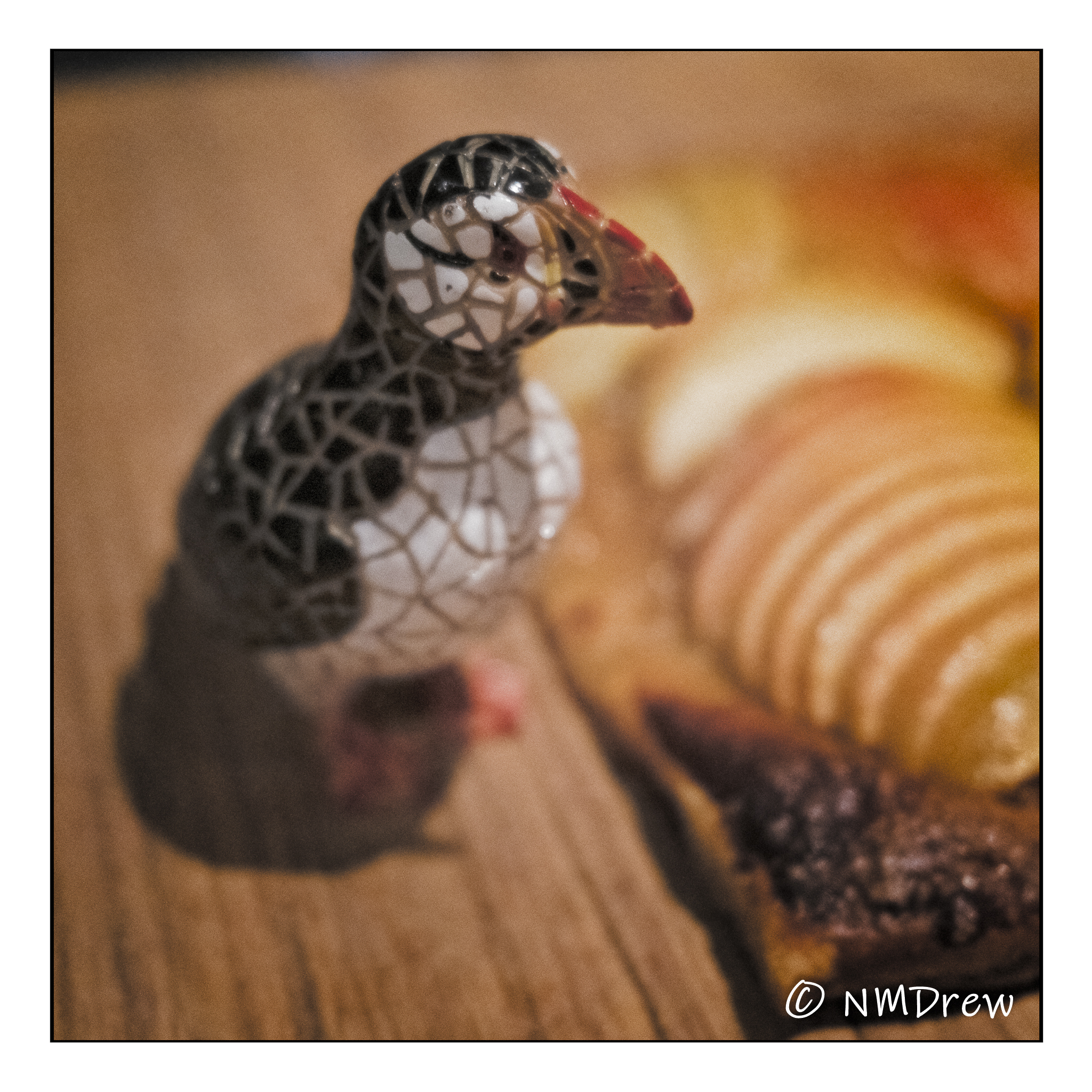 Take smaller ball of dough and break off small pieces and place them evenly over the top of the tart.