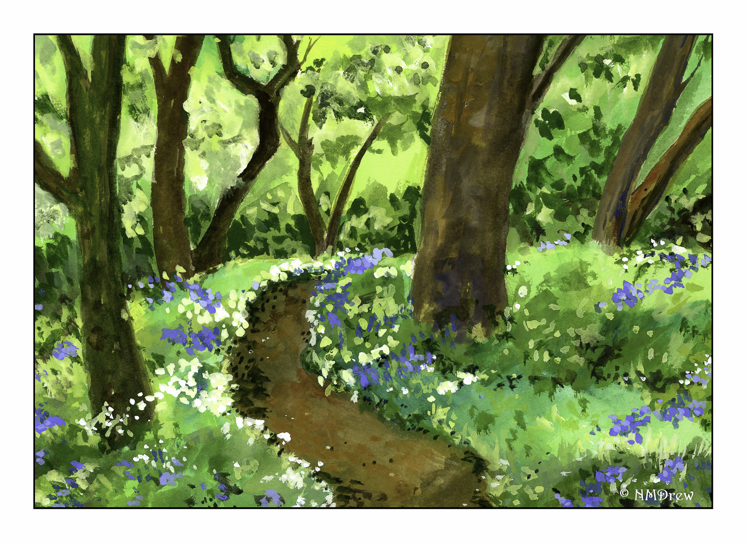 From there, I moved into remembering – thin layers to thick in gouache, building to lighter colors and thicker layers as you move along. I’ve watched a number of videos on YouTube to get a sense of the process. In particular, I have enjoyed the videos on gouache by Sarah Burns. It’s rather strange to me, but it worked out. Below is a painting of blue-eyed grass and white flowers under the oak trees in this stunning California spring.