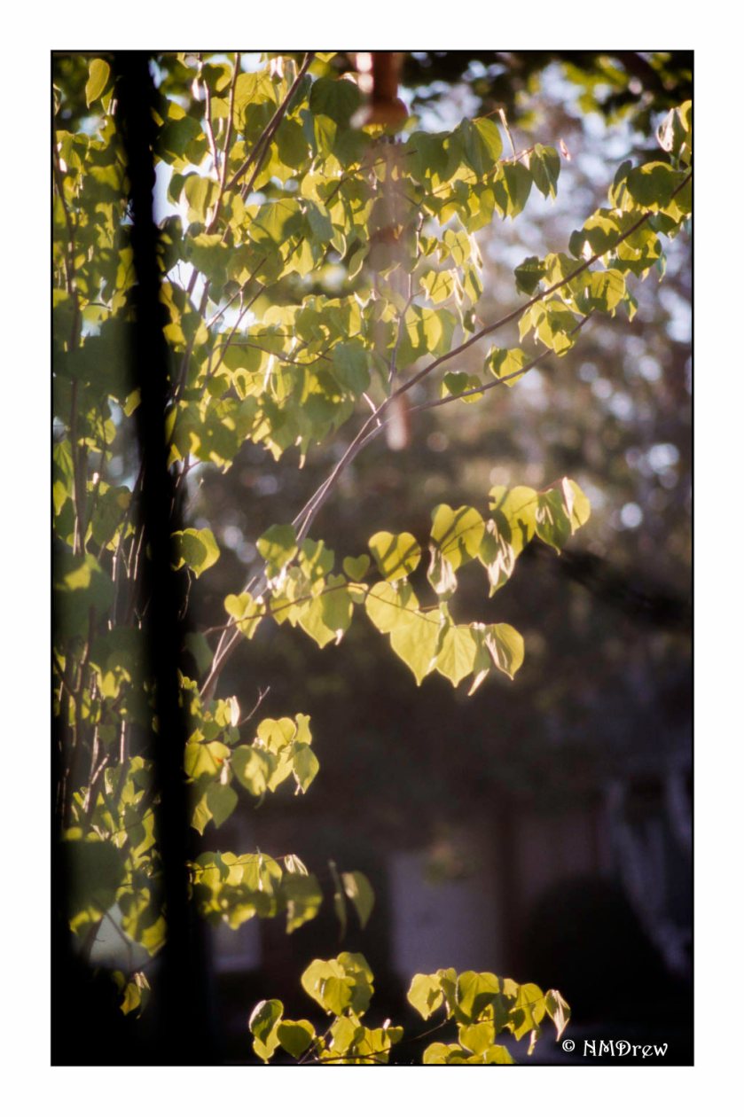 I loaded up my OM-4Ti with film last summer! The intention was to really master the camera. Well, half a year later, not mastered, but so totally love the OM cameras that I wanted to see what I had. This was taken probably around October 2019, through the studio window in the morning as the light was coming through the leaves. So, of course, “before the fall” – season, and leaves.
